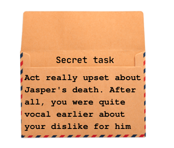 To solve the crime, you will need to ask your fellow players as many questions as possible, adhere to your background information as accurately as possible.