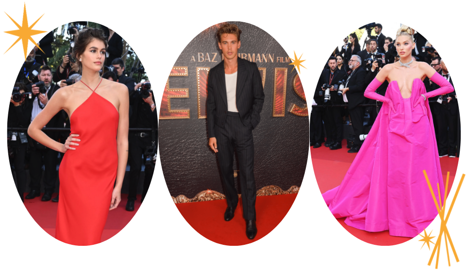 The celebs draw inspiration from the King’s style by wearing simplistic silhouettes and bold colours for the Elvis premiere at the Cannes Film Festival.