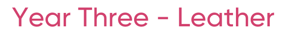 Leather is the traditional third year anniversary gift, because it represents durability, flexibility and strength. Leather can withstand wear and tear, whilst maintaining its quality - just like three years of marriage!
