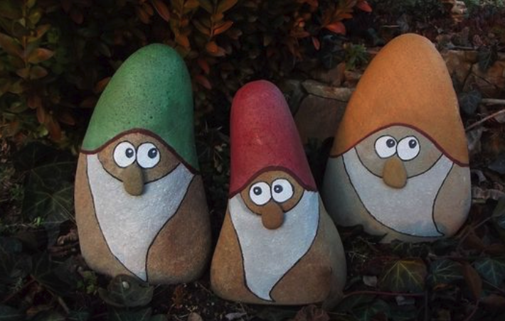 Collect some smooth, long stones and paint them to form a family of gnomes.